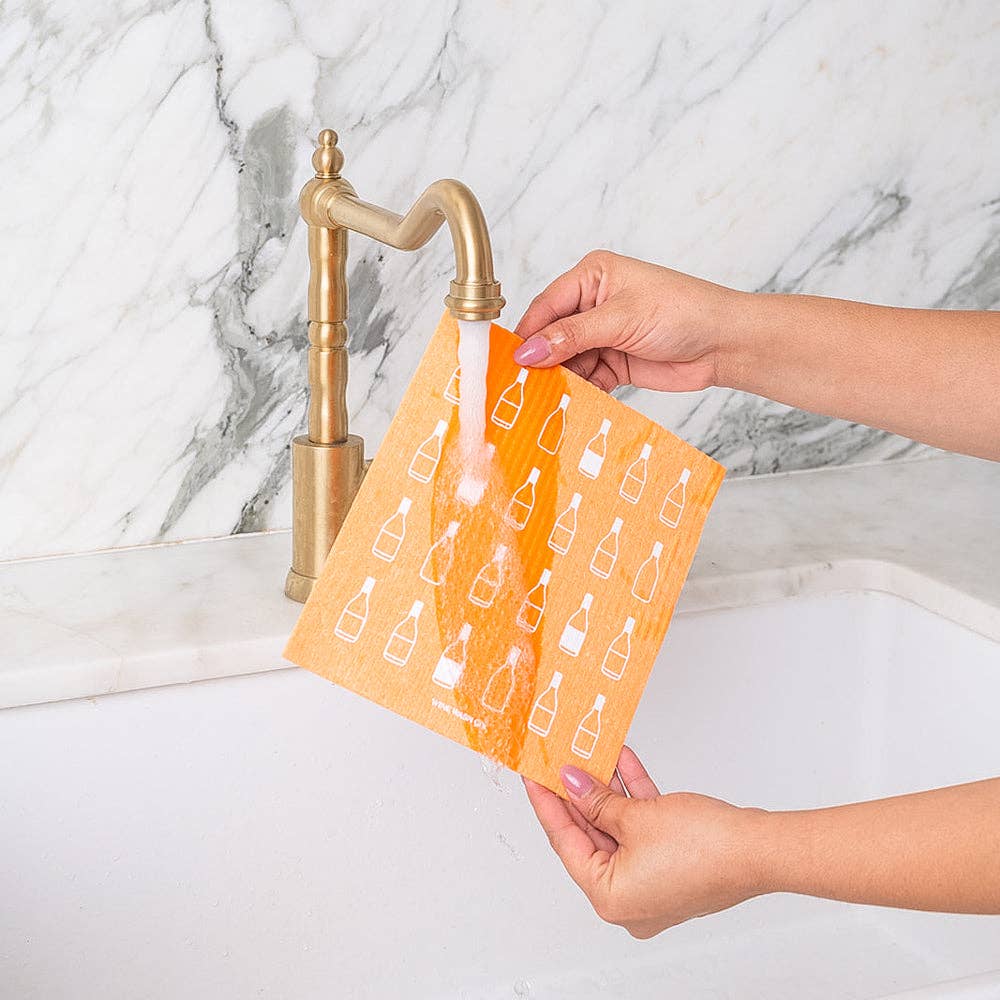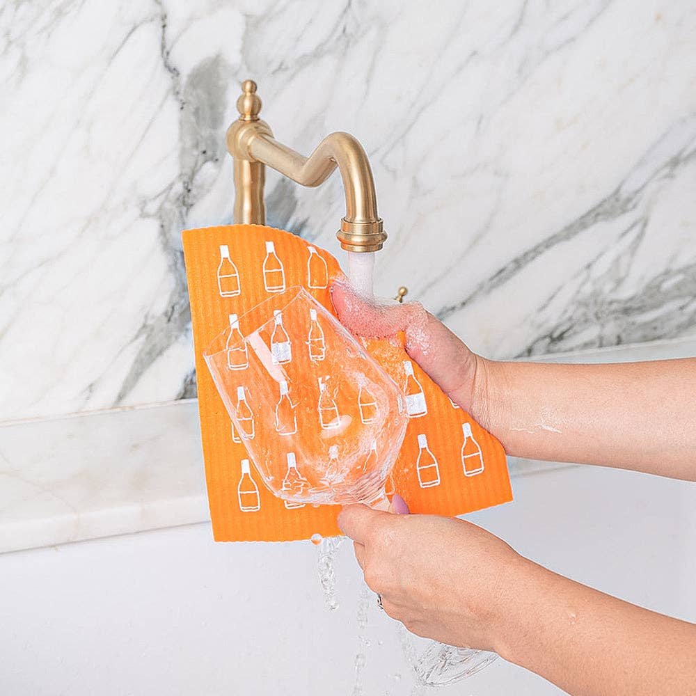 Less chores, more pours! Meet our reusable paper towels for wine lovers! These quick-drying Wine Wash® Biodegradable Dish Cloths are an eco-friendly way to tidy up your home. Lasting up to 6 months, these reusable cloths are a more sustainable alternative to paper towels. Use – and reuse – to keep your countertops, dishes, champagne glasses and kitchen sparkling clean! Features: * Each pack comes with a set of (2) Dish Towels in Yellow & Orange * Diamond texture on back for better grip on surfaces * Odorless, fast drying & super absorbent * Wash with your laundry (and air dry!) * Unique gift for wine lovers * Made of natural cotton and cellulose * Measures approx. 6.875” x 7.5” How to use: Wet and use as you would a paper towel or dish cloth.