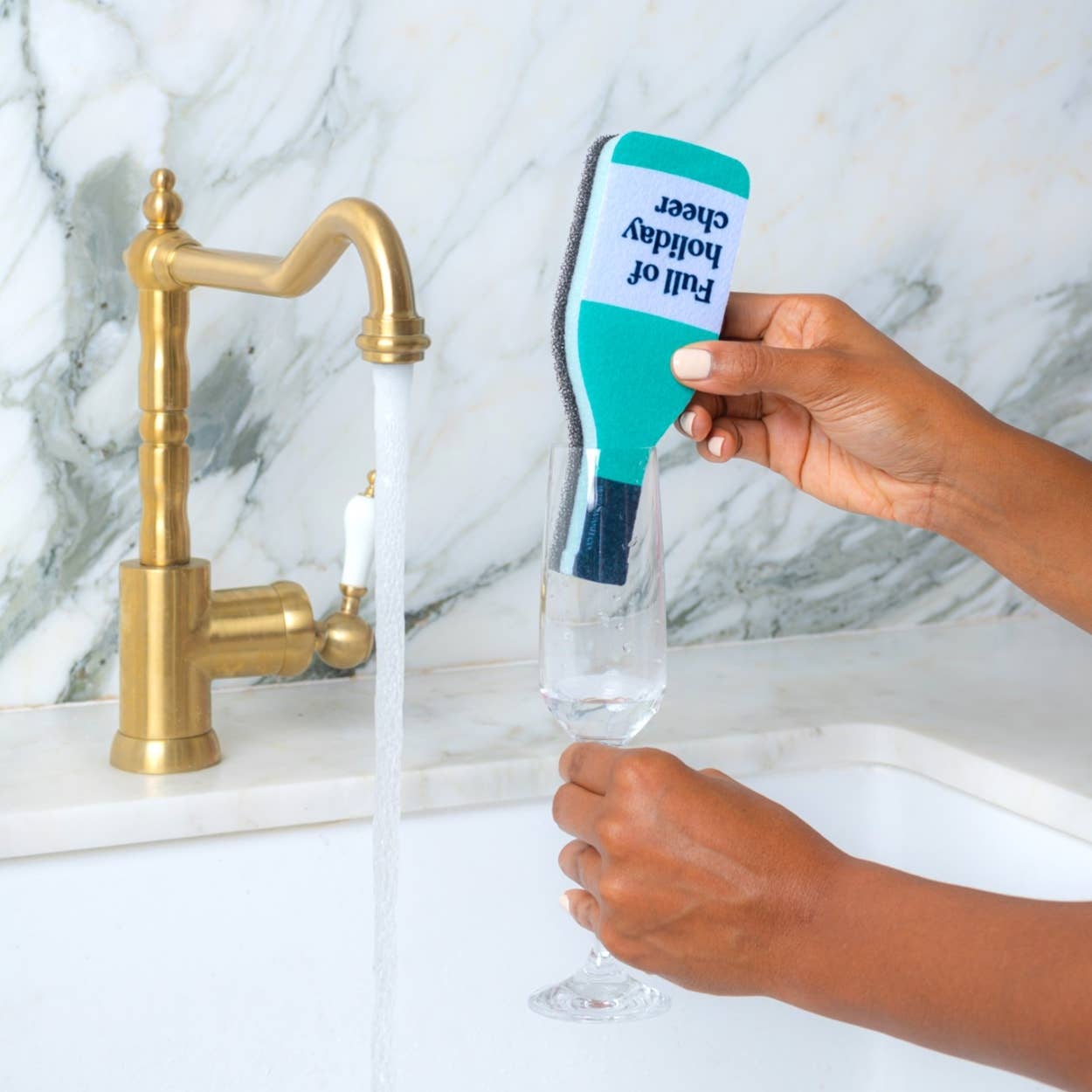 Add a *pop* of fun to your kitchen with our "Full of holiday cheer" green cleaning sponge. These wine-shaped sponges are great for light housework. The perfect stocking stuffer for the tidy vino lover!