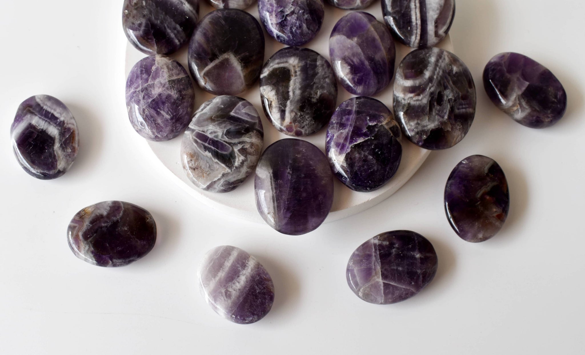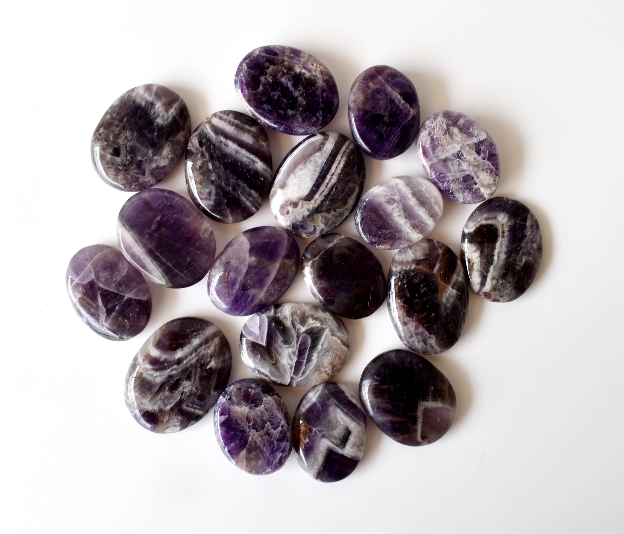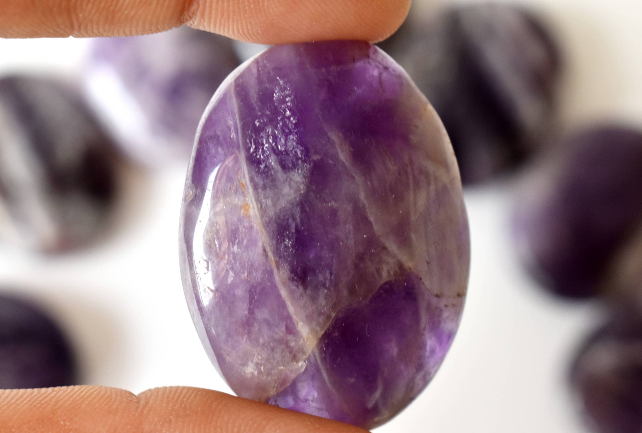 This beautiful Amethyst Stone is a polished oval-shaped stone which is known for its calming and healing properties. It's a rubbing stones for stress relief. Amethyst typically comes in shades of purple, ranging from light lavender to deep violet.