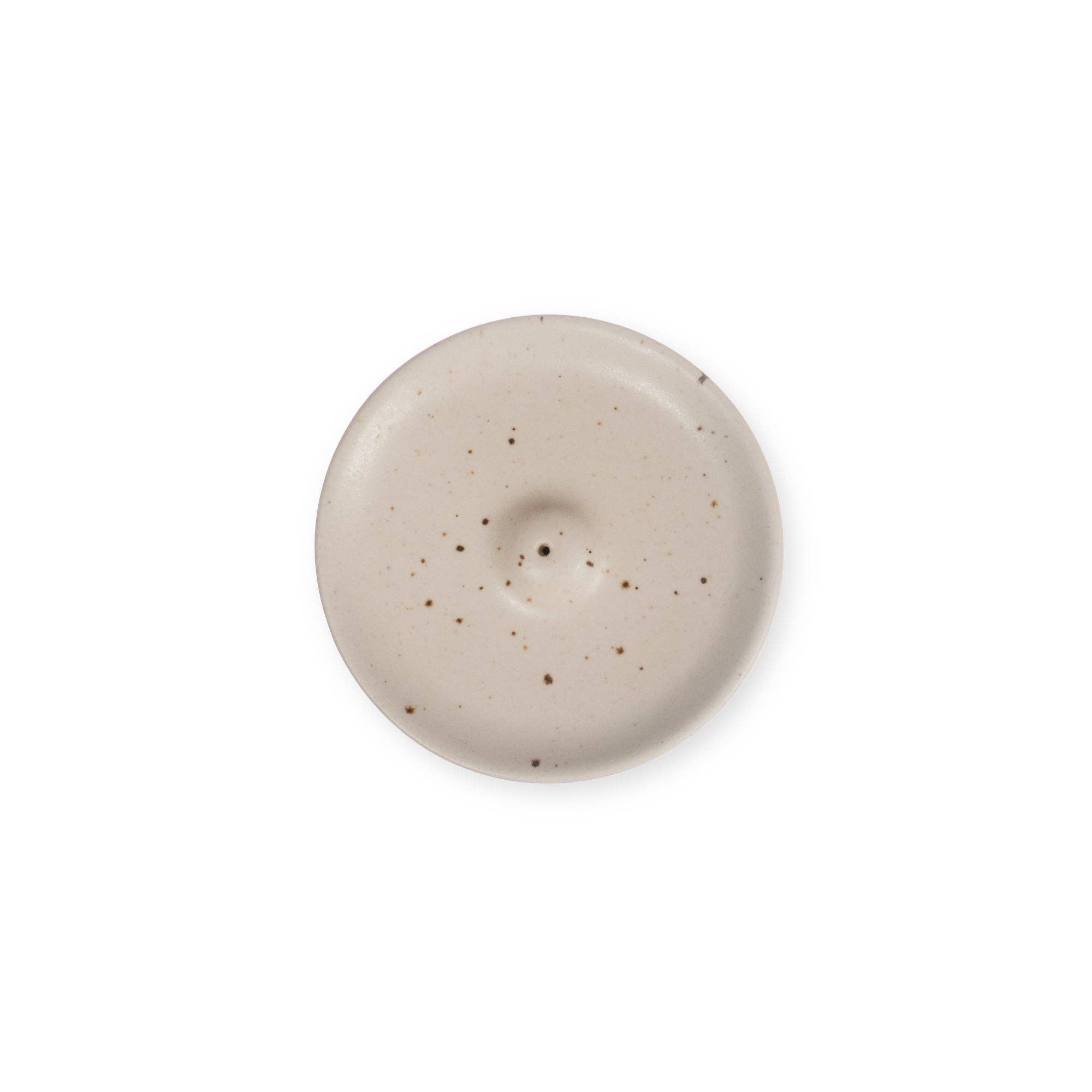 Simple, scene, and beautifully speckled- this ceramic incense holder is designed to bring a sense of calm and intention to your space. The center holds your favorite incense while the surrounding tray is perfect for holding tiny treasures. Tuck crystals, rings, or meaningful momentoes around the base to create a sacred little corner just for you . Perfect for daily rituals or meditation.